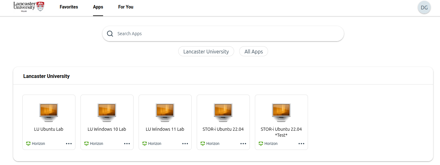 From a browser follow this link to Lancaster University MyLab. You will be prompted for a LU username, password, and one time passcode. You will then be presented with something like the following.